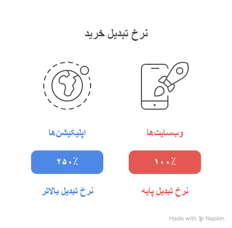 اپلیکیشنها نرخ تبدیل خریدی دو تا سه برابر بالاتر از وبسایتها دارند.