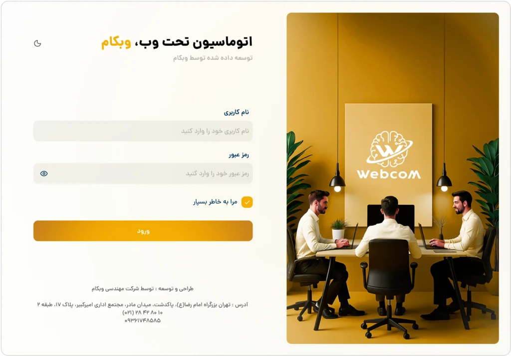 اتوماسیون اداری وبکام یکی از بهترین نرم افزارهای اتوماسیون اداری ایرانی است که در این سالها توانسته فرایندهای سازمانی را در قالب محیطی کاربرپسند، ساده و با امنیت بالا بین مشتری های خود به خوبی مدیریت کند.